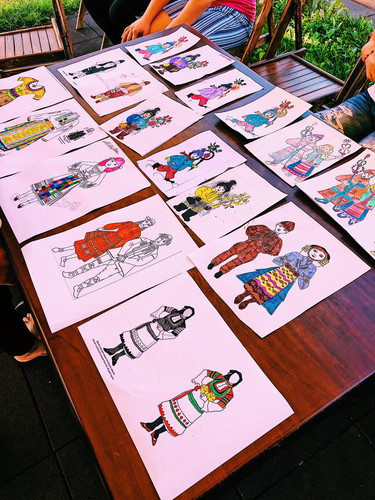 Today we are posting about some activities we had during this week, in order to introduce the Bulgarian traditional costume to our new interns. The first activity consisted of drawing and colouring the model of the costume on sheets of paper.